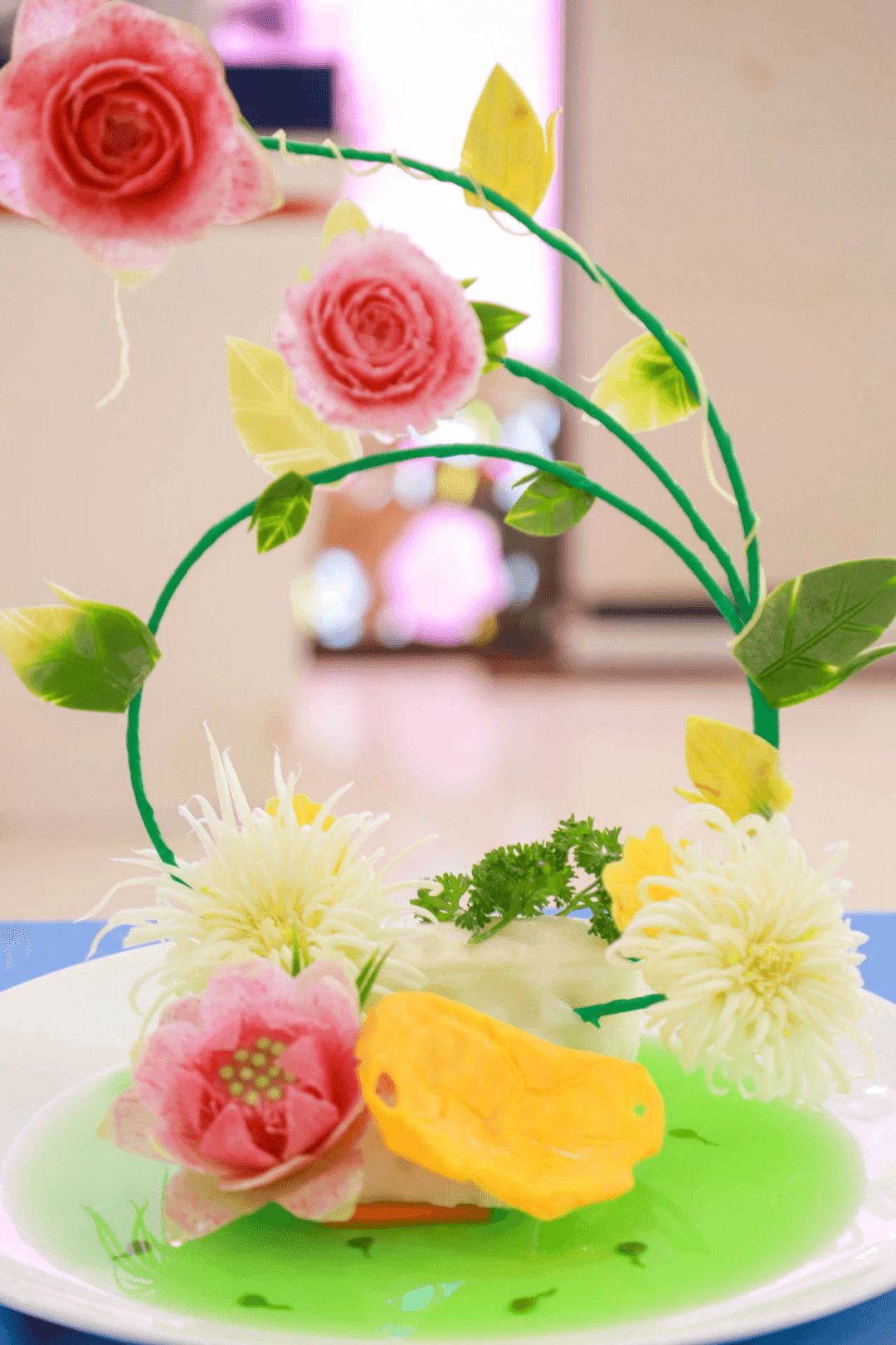 食品雕刻不仅要求厨师有一手好的雕工,还需要对原料有充分认识,什么食材适合雕刻成什么形状,色彩如何搭配,整体结构如何把握......
