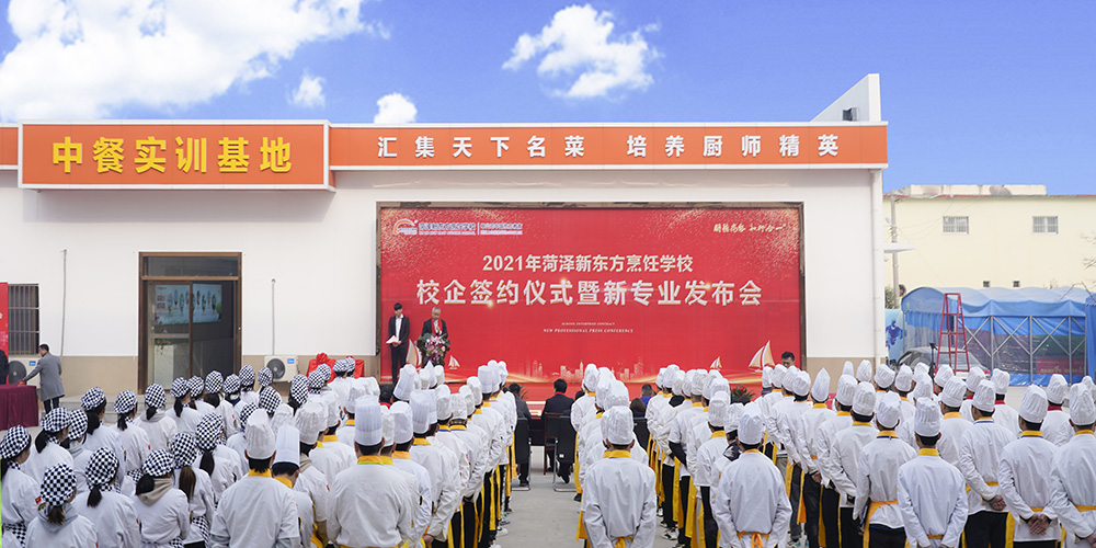 随着企业的快速发展,人才短缺问题越来越严重,与此同时,企业与高校教育的需求脱节,企业用人和学生就业问题越来越难解决。为双向解决学生就业和企业用人两大难题,搭建校企多方合作平台,充分发挥校企合作双方的优势。2021年12月10日上午十一点,菏泽新东方烹饪学校与多家餐饮企业积极合作举行签约仪式,共同培养理论扎实、实战性强、适合行业需求的、复合型人才。